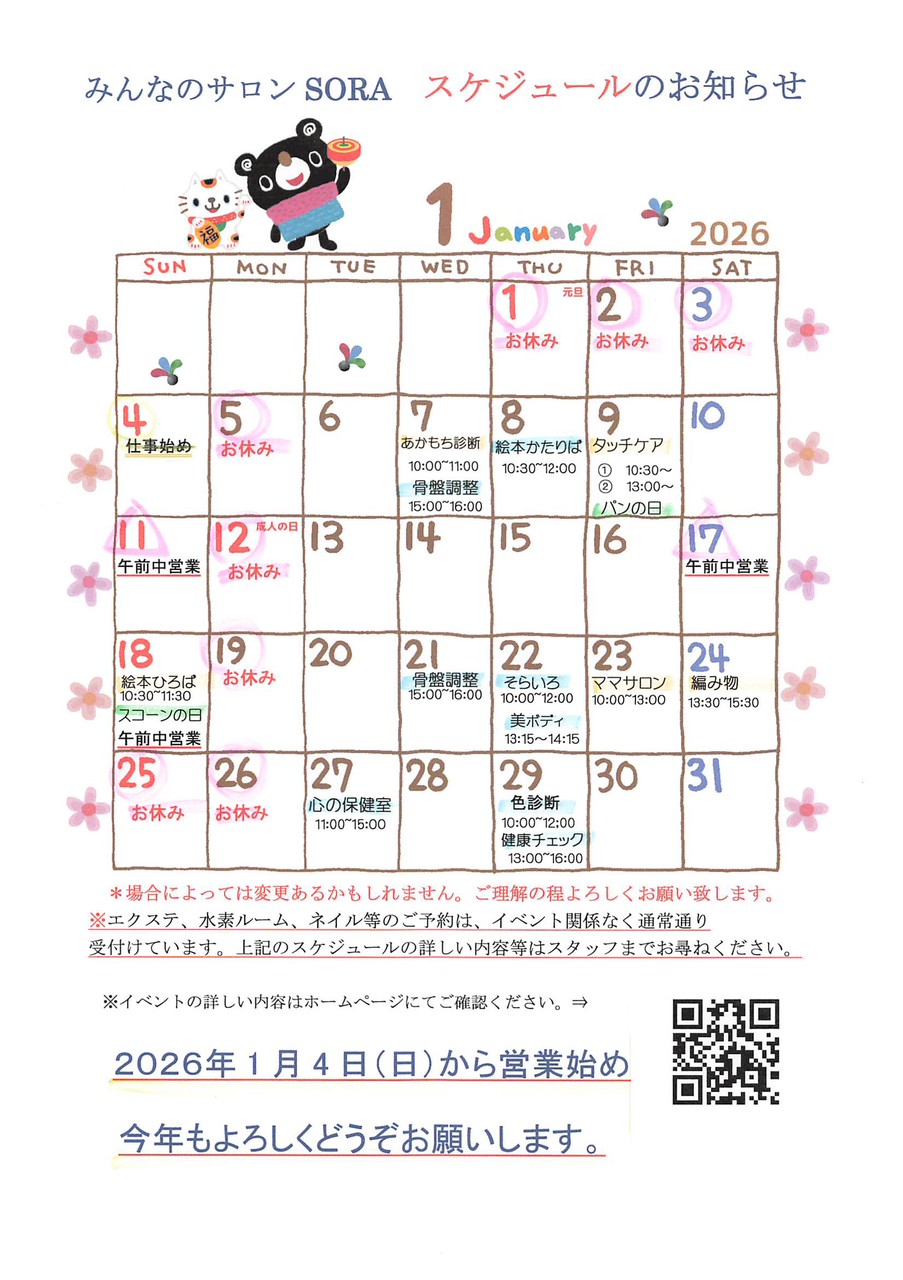 スケジュール【2026年1月カレンダー】